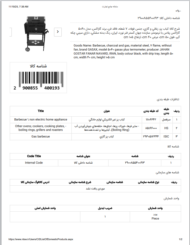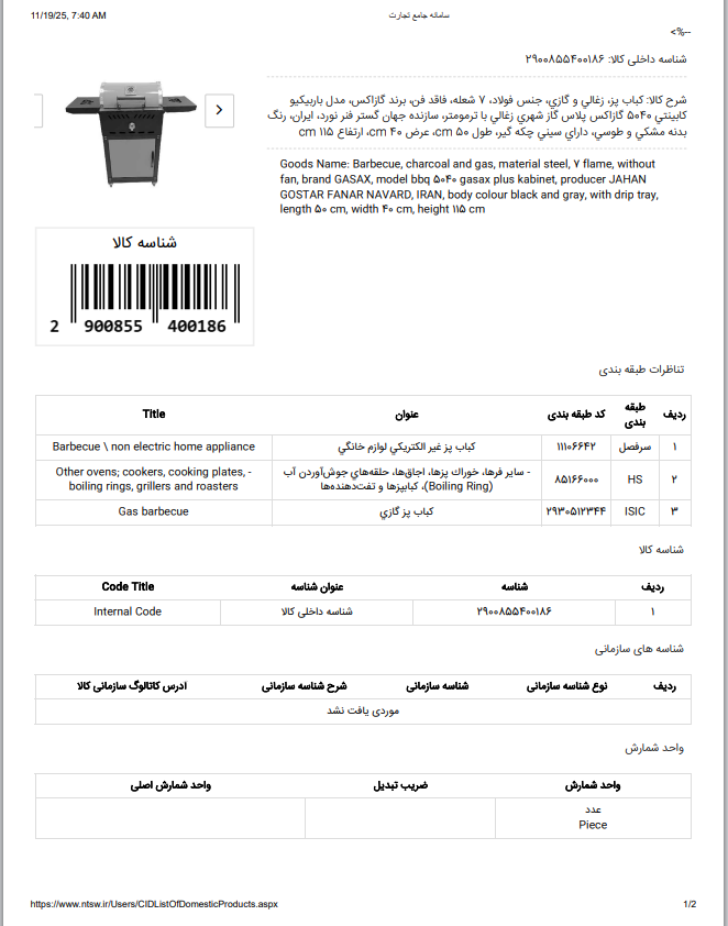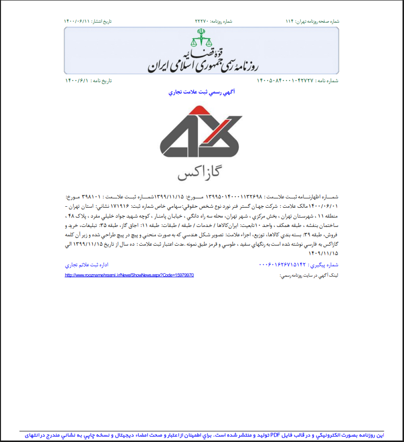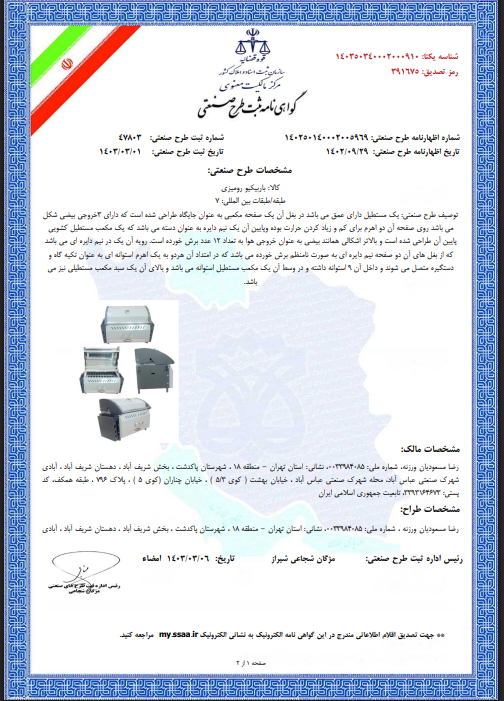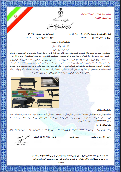 طرح های صنعتی باربیکیو گازاکس در سازمان ثبت و اسناد کشور به ثبت رسیده است